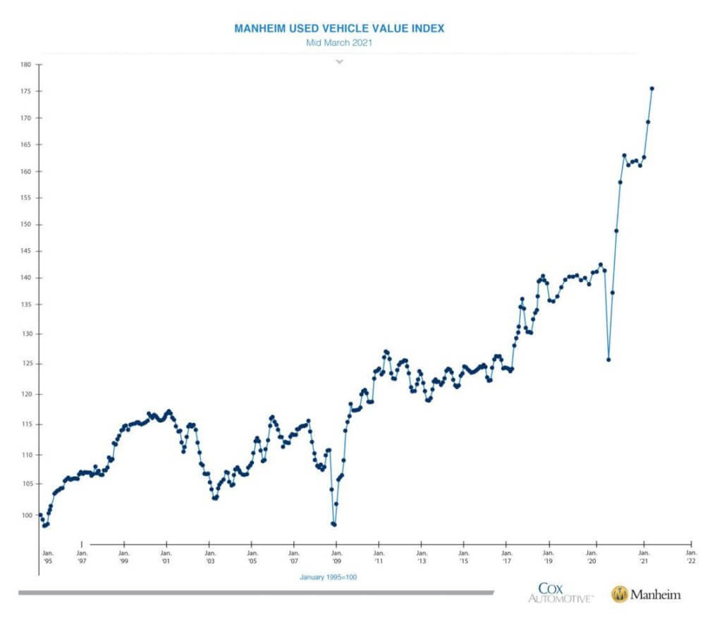 Listening to stories from my parents and clients about the late 1970s, I can’t imagine anyone wants to have a repeat of those times. At this point, it’s still too early to know whether or not this rise in prices is transitory, or if it could become a longer-term fixture over the next few years. One of many examples can be found in the used car market. Prices have exploded higher because new vehicle production has slowed considerably due to the microchip shortage. Some industry experts believe the issue could be solved in a few months or it may take a few years.