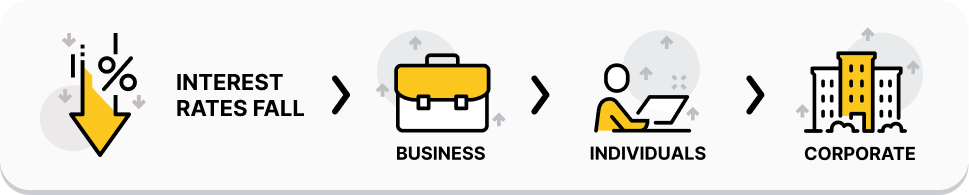 Your mortgage is just one example of how an interest rate change can directly affect your wealth. Let’s zoom out to see what happens to the economy, and the downstream effects of interest rate changes.